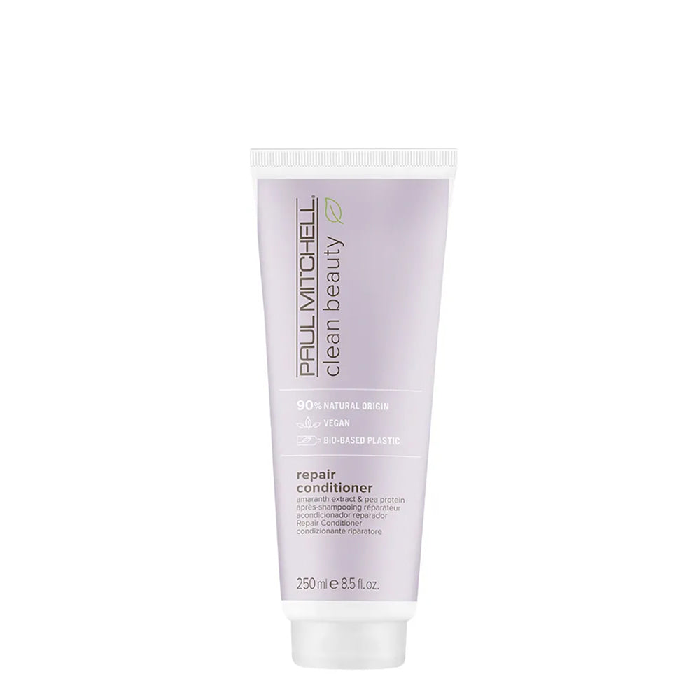 Clean Beauty Repair Conditioner by Paul Mitchell gently nourishes and protects your hair. This reconstructing conditioner helps repair damage caused by everyday styling and chemical treatments. It leaves hair feeling soft, strong, and balanced.